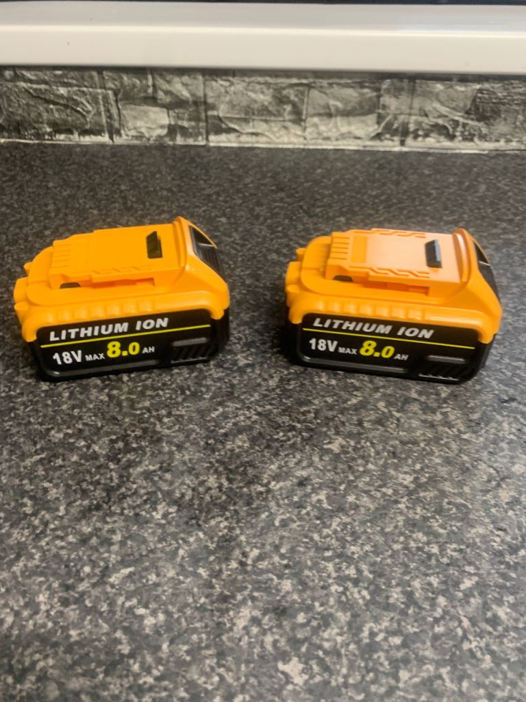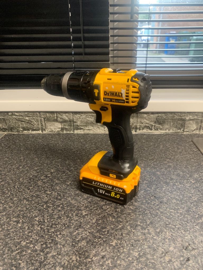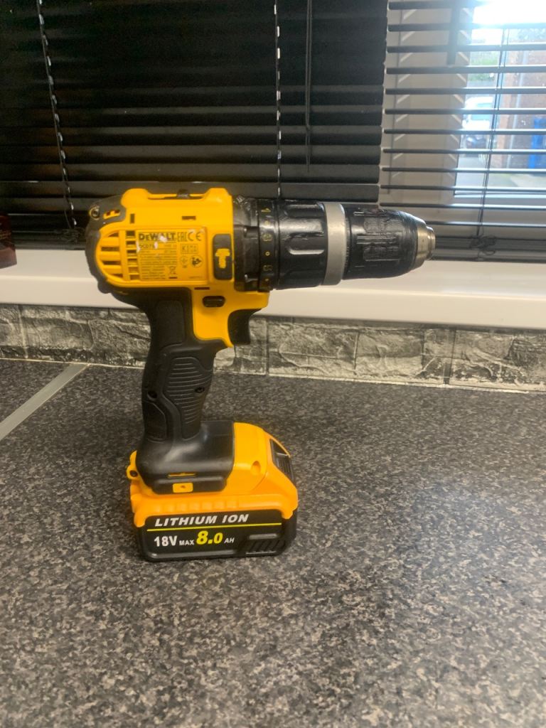 A Dewalt 18v drill used but in great condition, set includes , 1 brand new tool bag , 2 x powerful aftermarket 8AH batteries and a charger