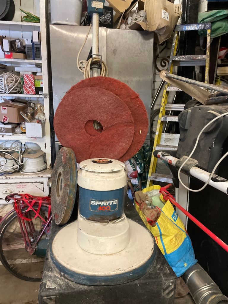 Sprite 400 floor polisher, plate and some discs. Old school, but works great.
