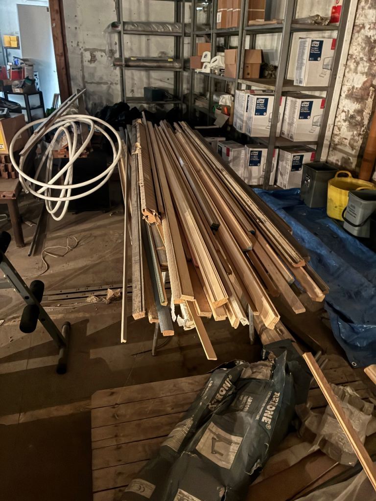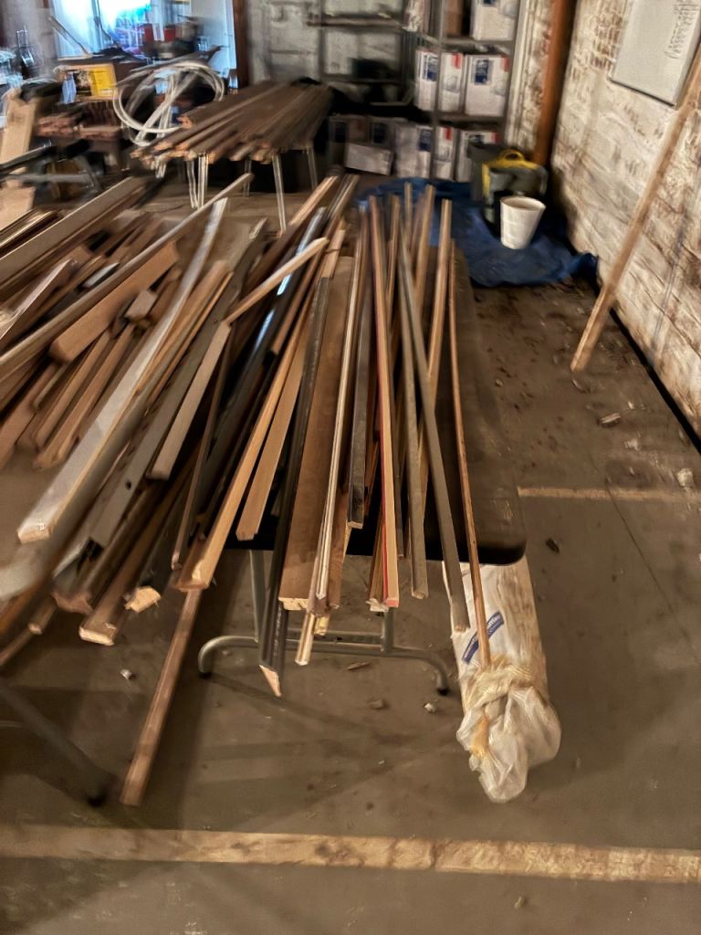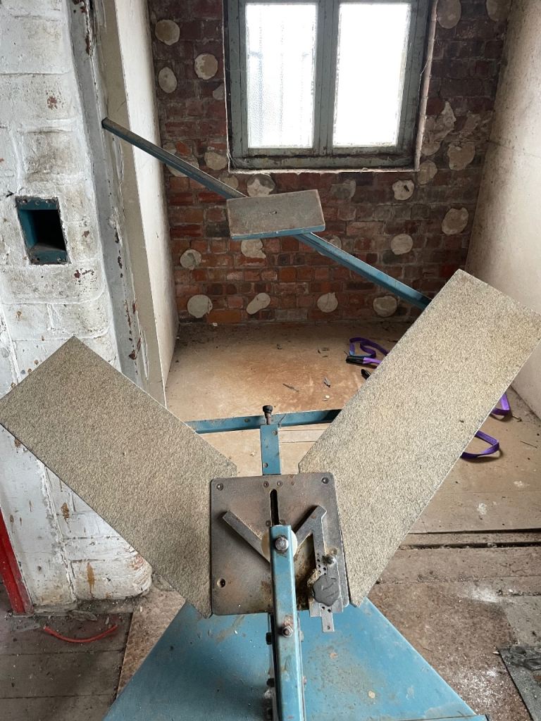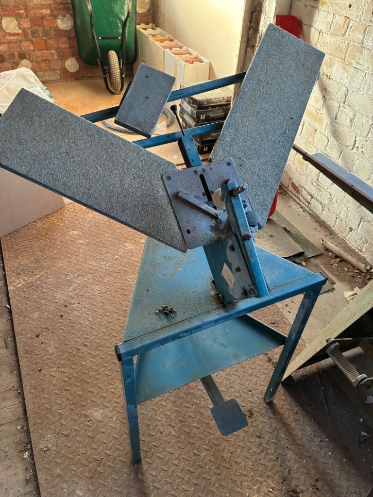 For sale is a foot operated guillotine and under Pinner for picture framing, I will include the 2 boxes of bits and pieces of sundries for framing, and you can take as much of the lengths of mouldings as you like.