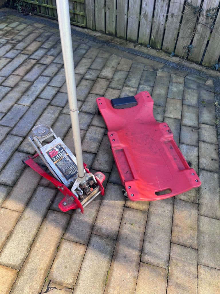 Trolley Jack £55.00 compressor £50.00 creeper £15.00 if sold as one lot £100.00 final price. All are in working condition and have had very little use l just don’t need anymore