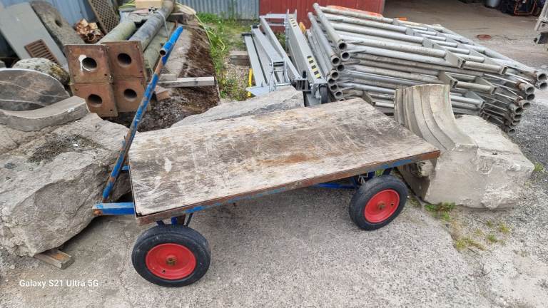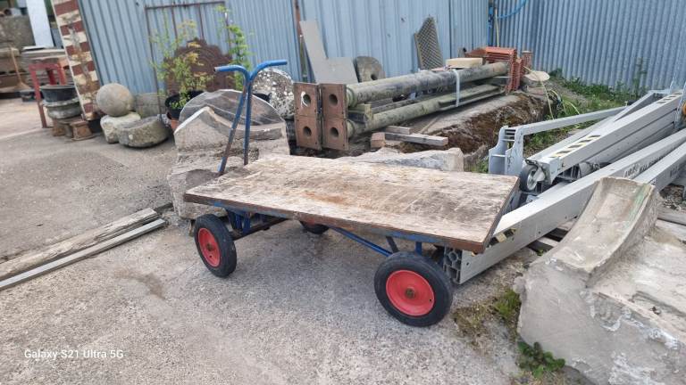 Heavy duty steerable cart with solid rubber tyres. Rated for 350kg. Selling for £170.