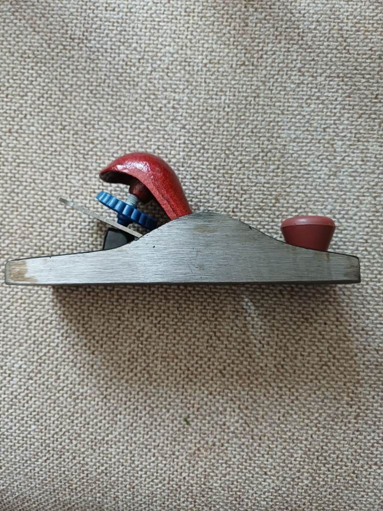 Hobby block plane. Cast iron body. Carbon steel.