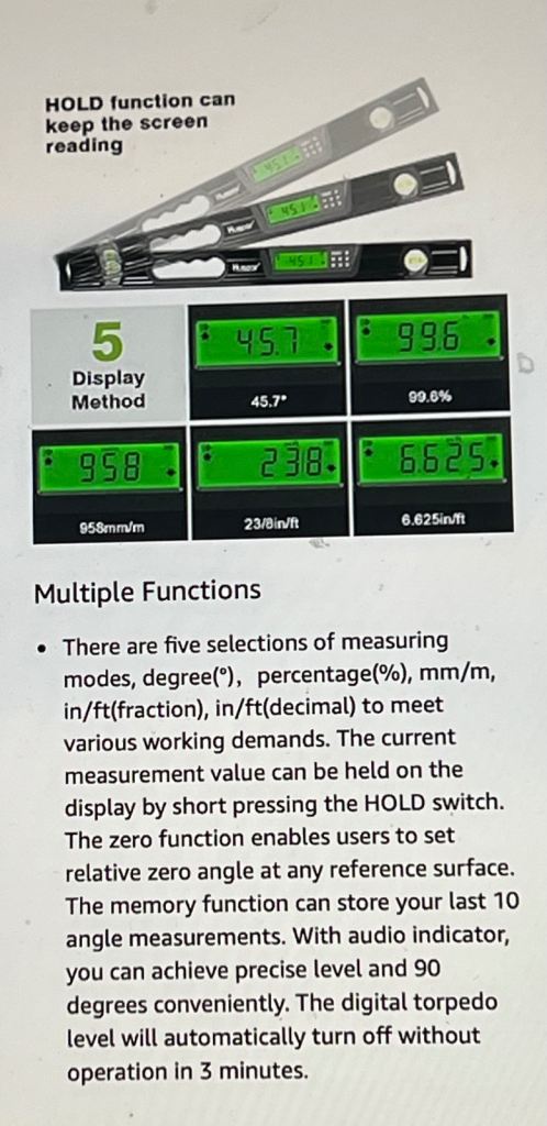 24 INCH WITH 2 HIGH ACCURATE LEVELS AND LCD DISPLAY