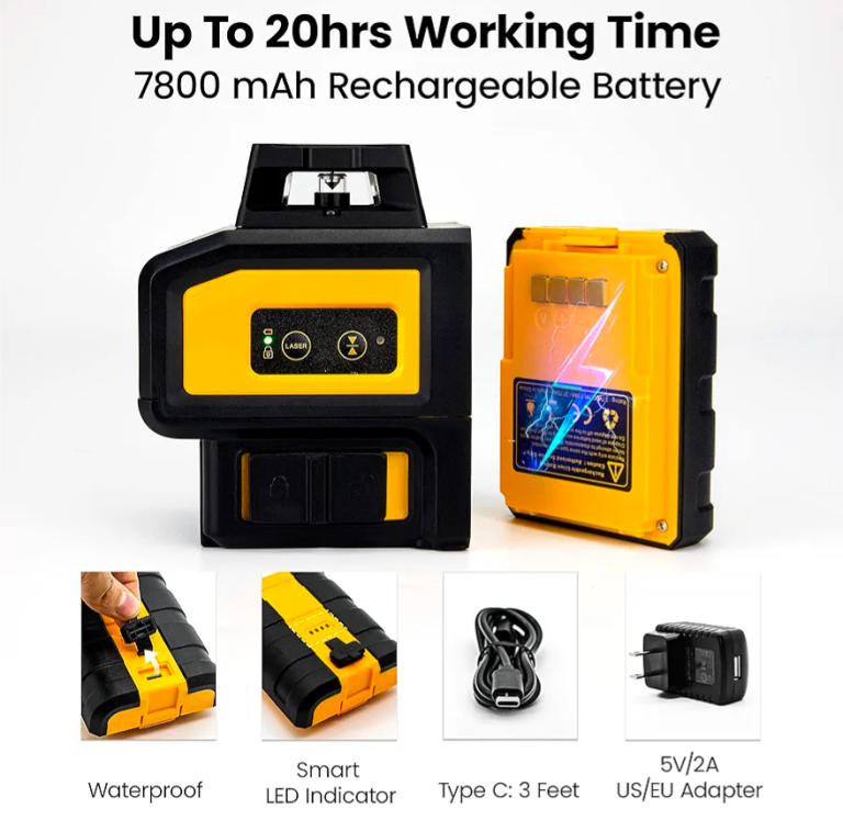 KAIWEETS KT360B 360° Laser Level with Green Beam, 2 Red Plumb Spots, 3D Lines Up to 60M, Self-Levelling & Manual Modes, Magnetic Base with Self-Levelling Mode, Manual Mode, Independents Windows, Magnetic Base, Waterproof,Dust proof,USB-C 7800mAh rechargeable battery.Brand new .