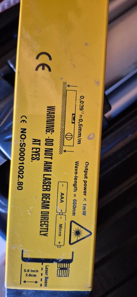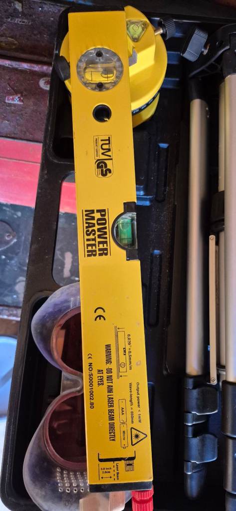 I have for sale a almost new Power Master laser leveler no damage in a carry case good to go works perfectly, comes with adjustable bed and legs safety glasses two different lens spliters and two fresh Duracell AAA batteries, grab a bargain,if this is something that you can use get it quick as I only have one . Thanks for looking.