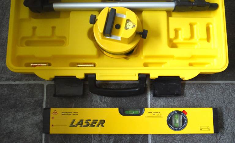 Lazer dumpy level with tripod new in its case. Laser brand, see photos