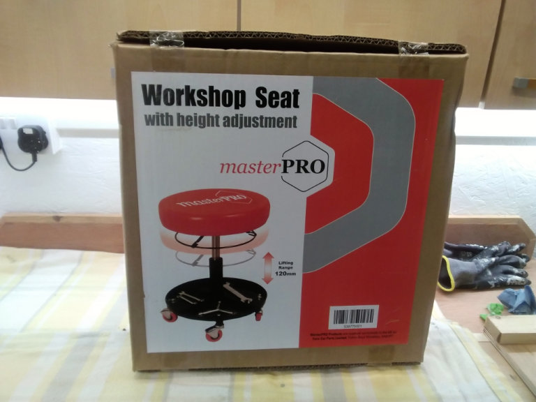 2 of machanics Master Pro workshop seats still boxed with work tray. Hydrolic rise & fall seats.