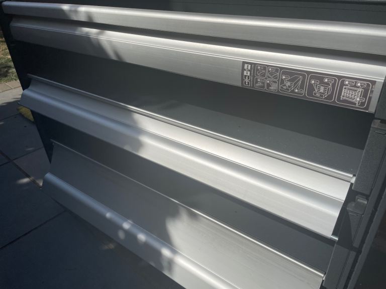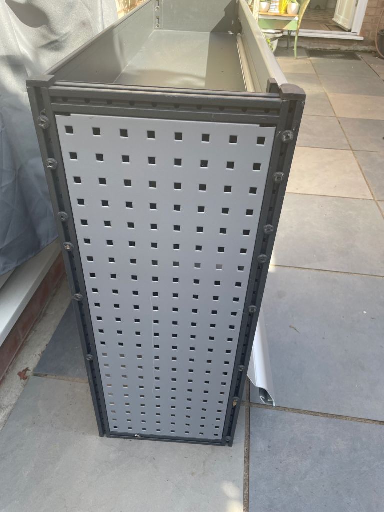 Strong sturdy metal cabinet ideal for tool storage etc in van or garage. Originally used in police forensic vehicle.