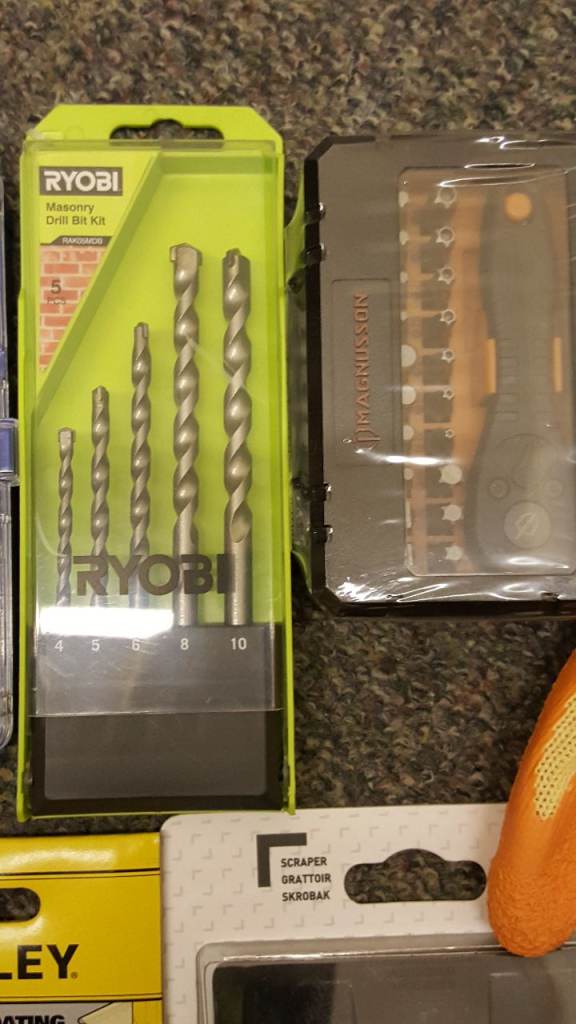 5 piece Ryobi Masonry Drill Bit Set: 4mm, 5mm, 6mm, 8mm and 10mm