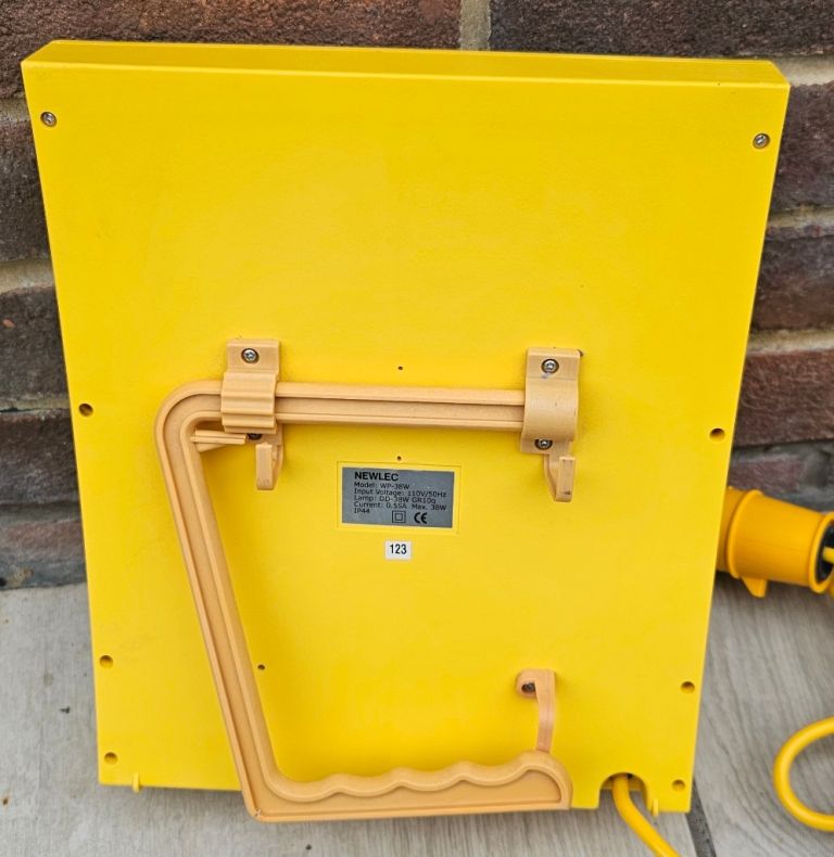 Newlec Yellow 4M Corded 16AMP 110V 3 Pin IP44 Worklight with stand 33cmx26cmx8cm