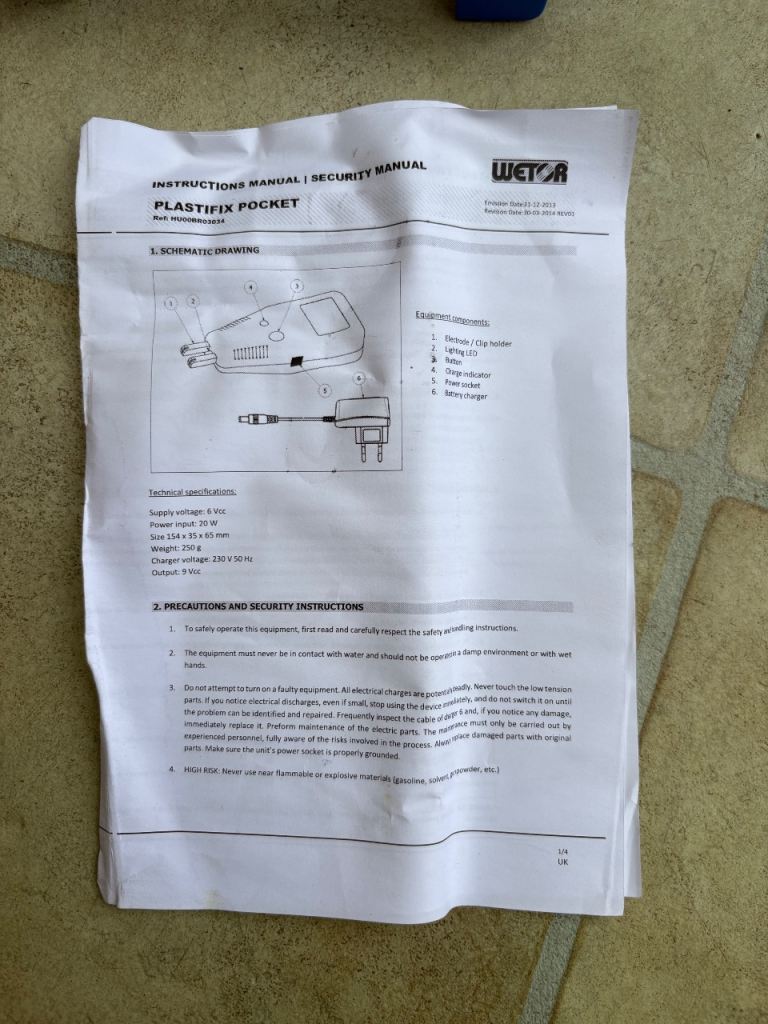Plastifix pocket, this is used to repair broken plastic parts with stainless steel staples creating a strong bond.