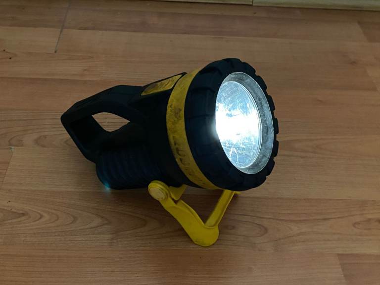 Rubberised torch /flashlight with folding stand