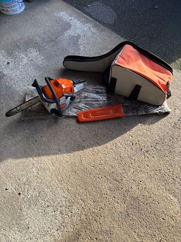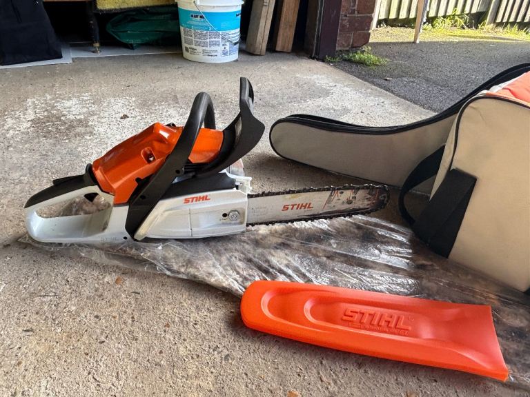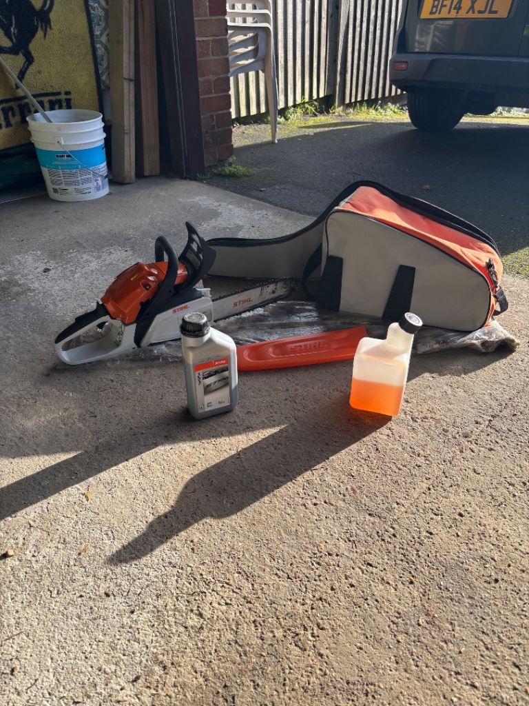 Brand new used only twice used only for cutting a few small tree stumps, now not needed . Excellent tool for cutting down small trees and good for cutting branches off .
