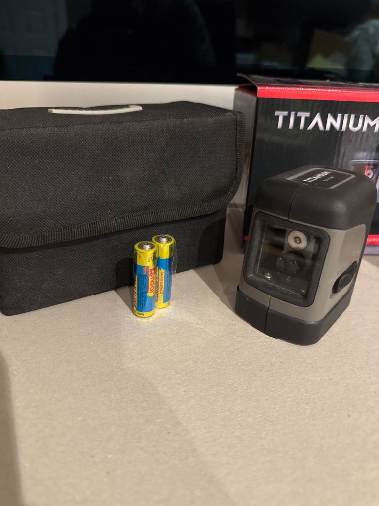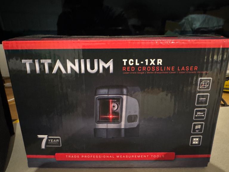 Titanium laser level tcl 1xr. Complete with box, bracket batteries and carry case.