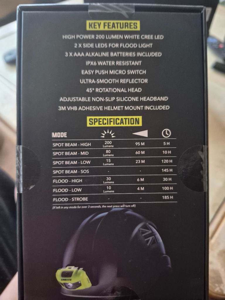 Posting for 14+ yearsUNILITE PS-HDL2 LED Helmet Headtorches - 200 Lumen