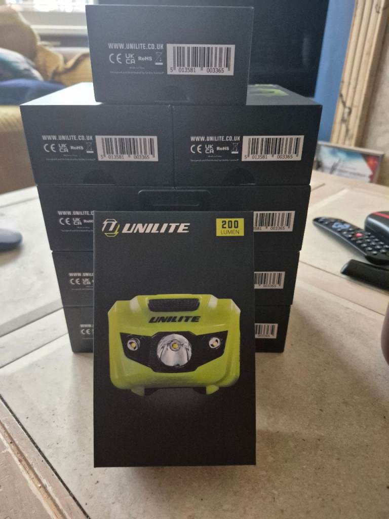 Brand new UNILITE PS-HDL2 LED headtorches, still in their original packaging.