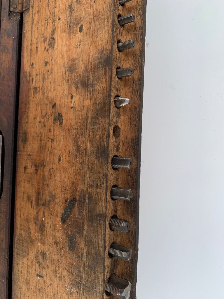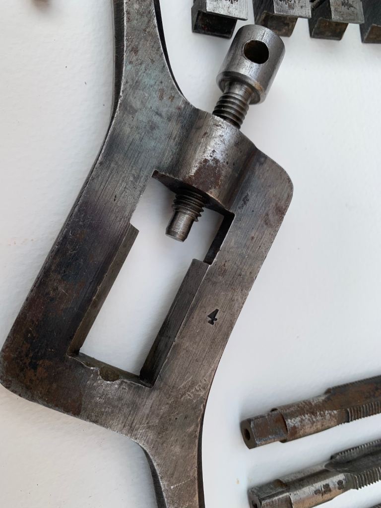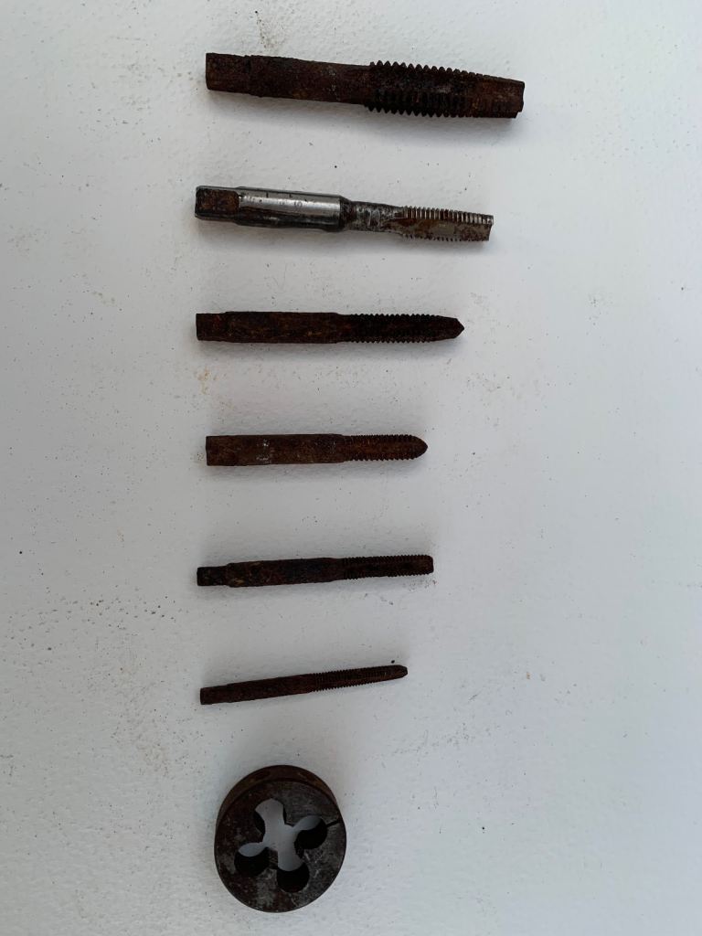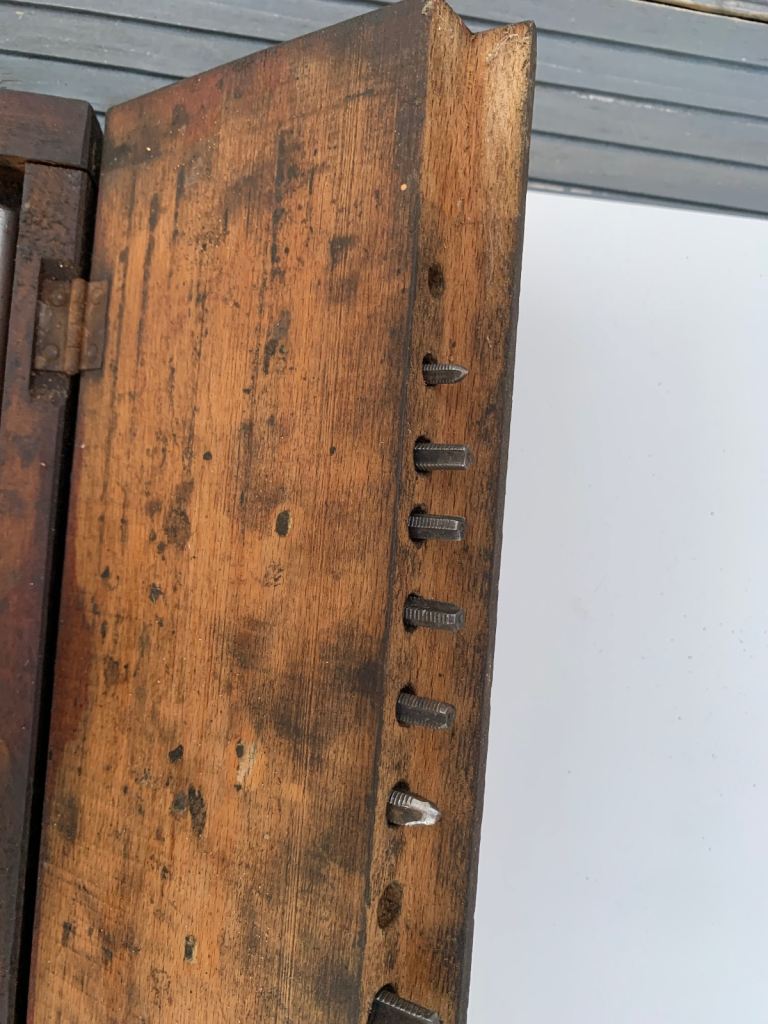 Vintage Tap and Die set in its own wooden box. Possibly by Presto. BSW Imperial sizes. Last photo are of additional taps. Cash and collection only from Undy, Magor.