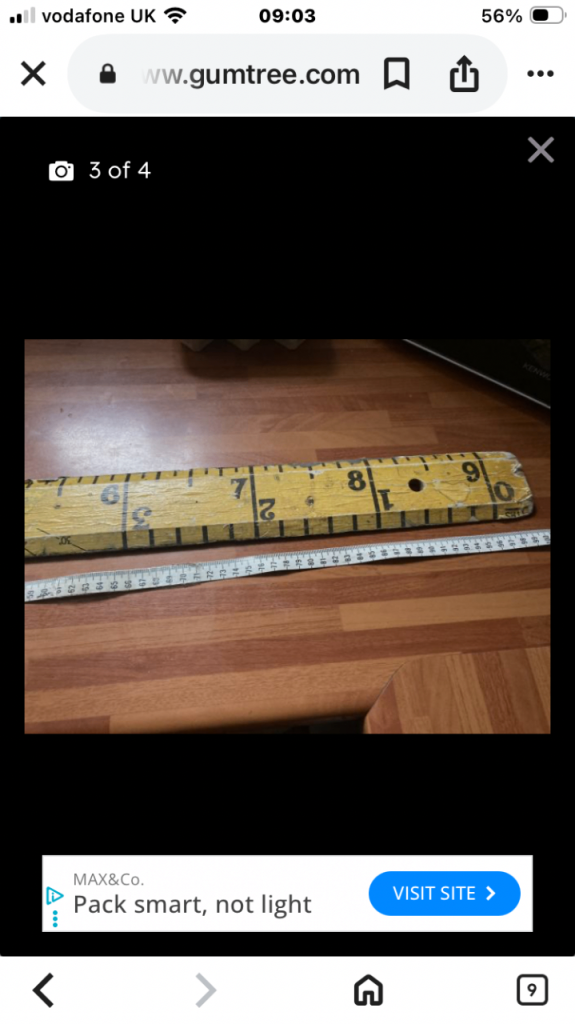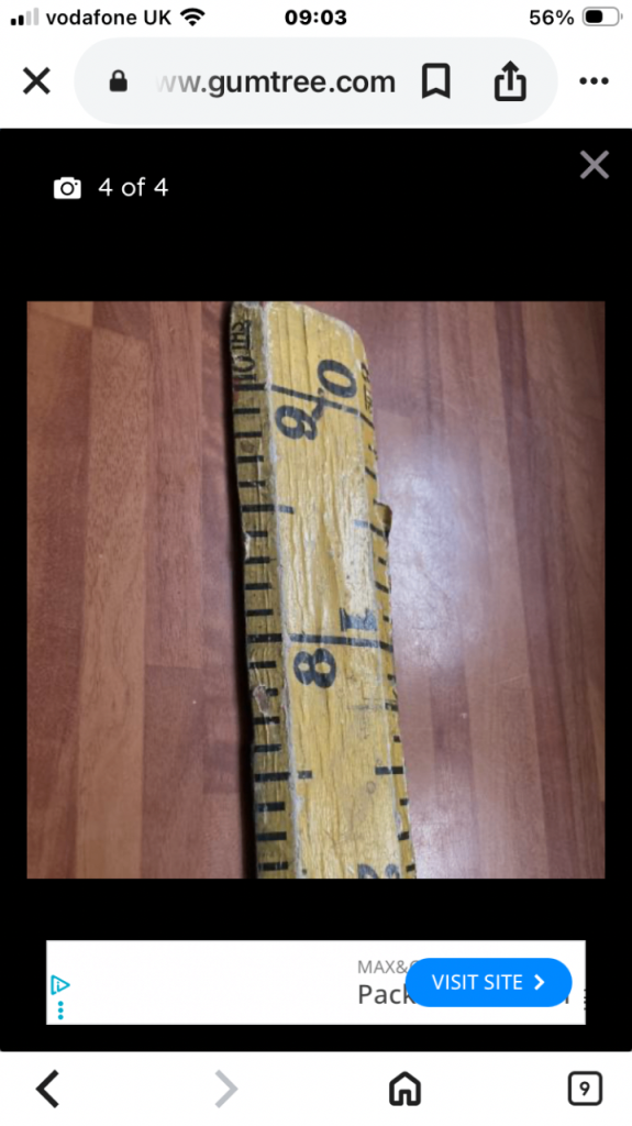 Lovely old wooden ruler. Be good as shop prop or man cave .
