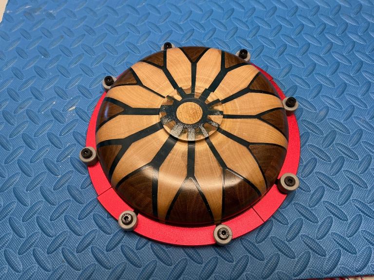 Wood turning Chuck. Bolts onto standard 4 jaw chuck to hold bowls on the top surface. See photos.