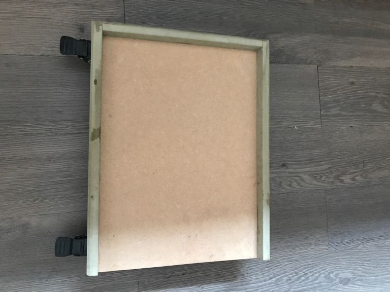 Wooden dolly trolley on wheels, brakes on 2 wheels, ready to paint/varnish - in very good condition.