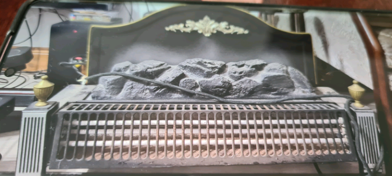 BEAUTIFUL BLACK & GOLD ELECTRIC FIRE IN GOOD CONDITION NEEDS SOLD ASAP