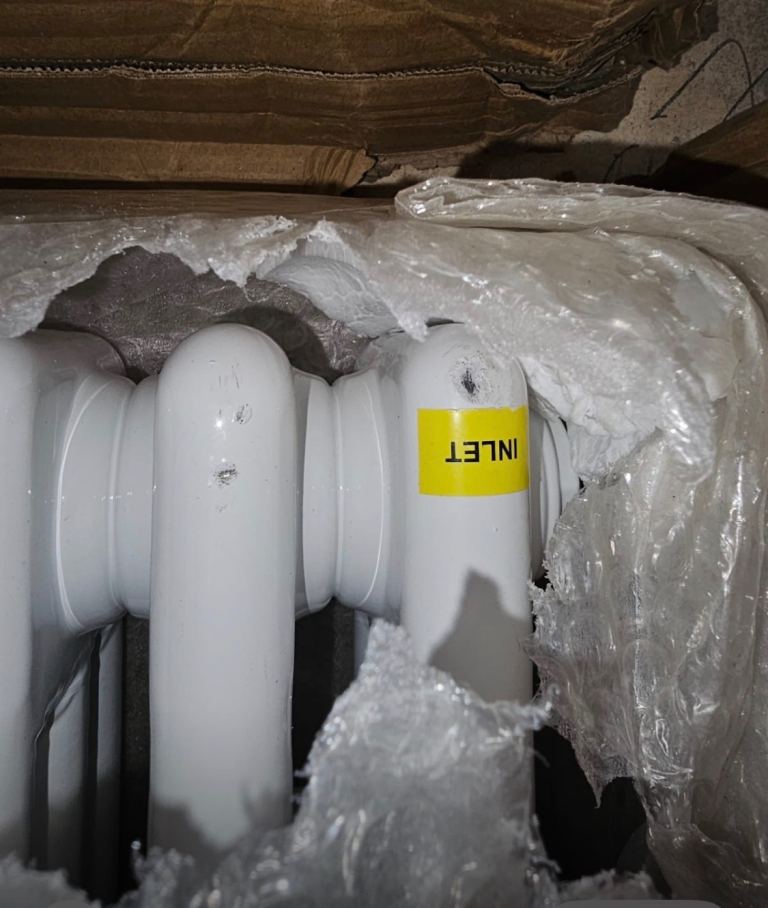 This is a beautiful and powerful radiator, exactly the same as the one installed in first photo. But it has a chip at the bottom (see last photo) which will not be visible when installed and will not affect its function.