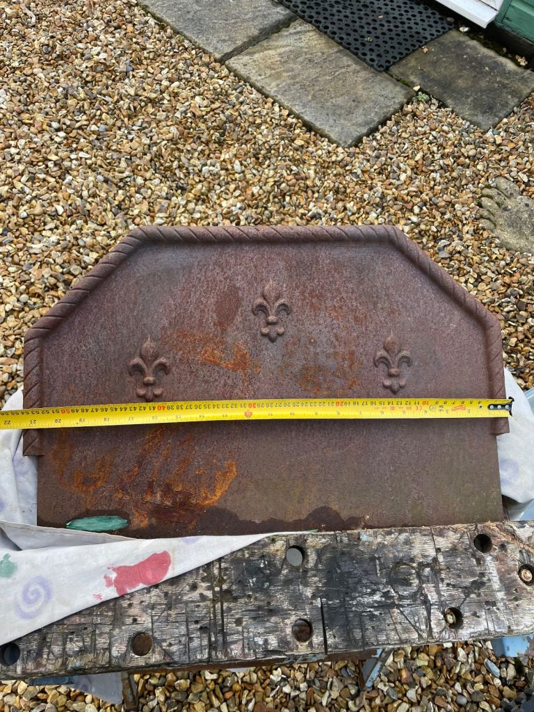Cast iron fire Back good condition needs a coat of black paint or leave as it is patina wise size22inches x14 inches