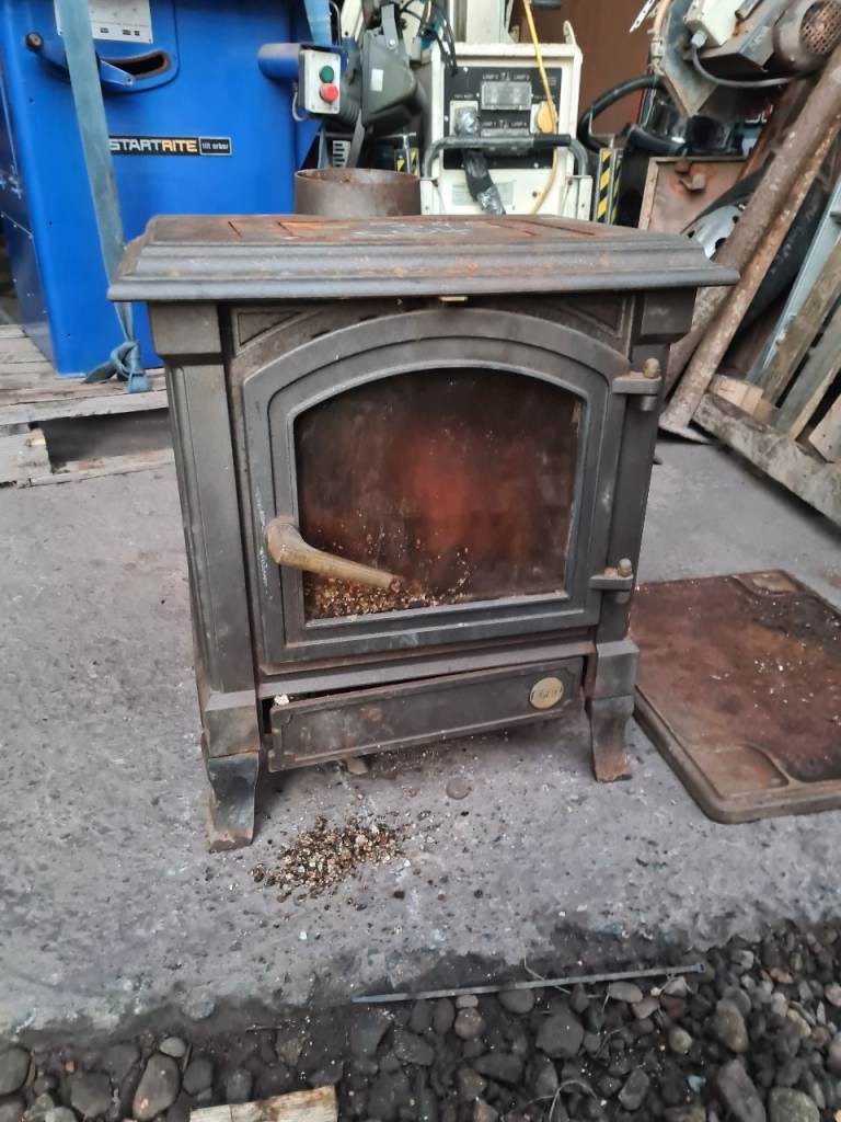 Cast iron log burner in good used condition very smart looking burner has a cast iron plate that it sits on n has a 5inch chimney door etc opens n closes fine £145