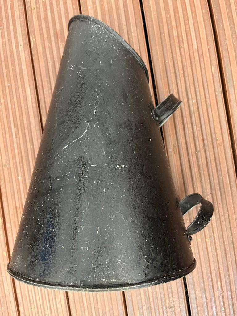 Black coal scuttle/hod H40cm W at base 27cm has patina as used, see pictures. Cash on collection please.