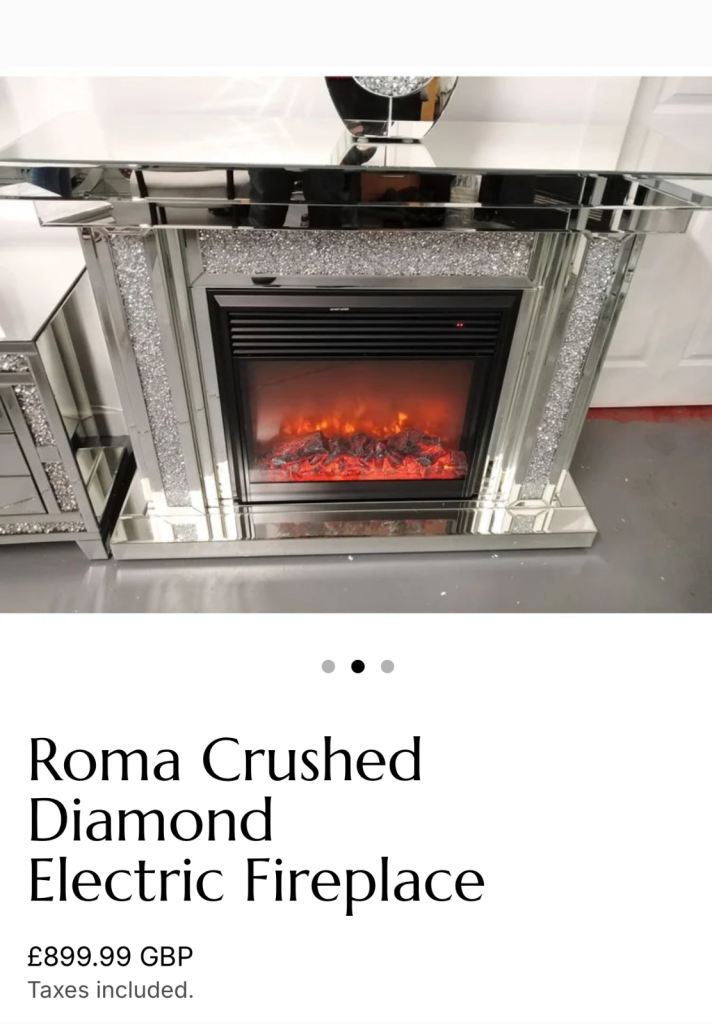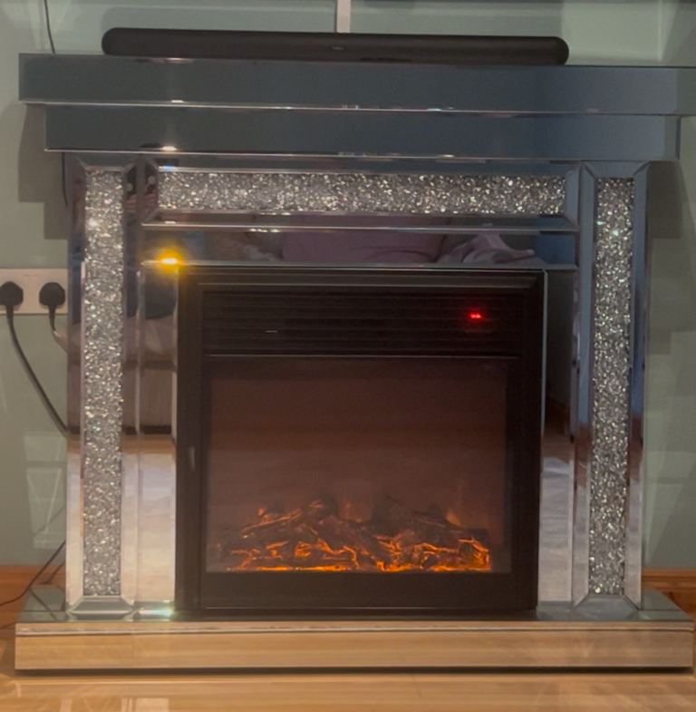 Add instant glamour to your home with this beautiful mirrored electric fireplace in perfect condition. The sparkling crystal detail and modern design make it a real statement piece — both stylish and functional!