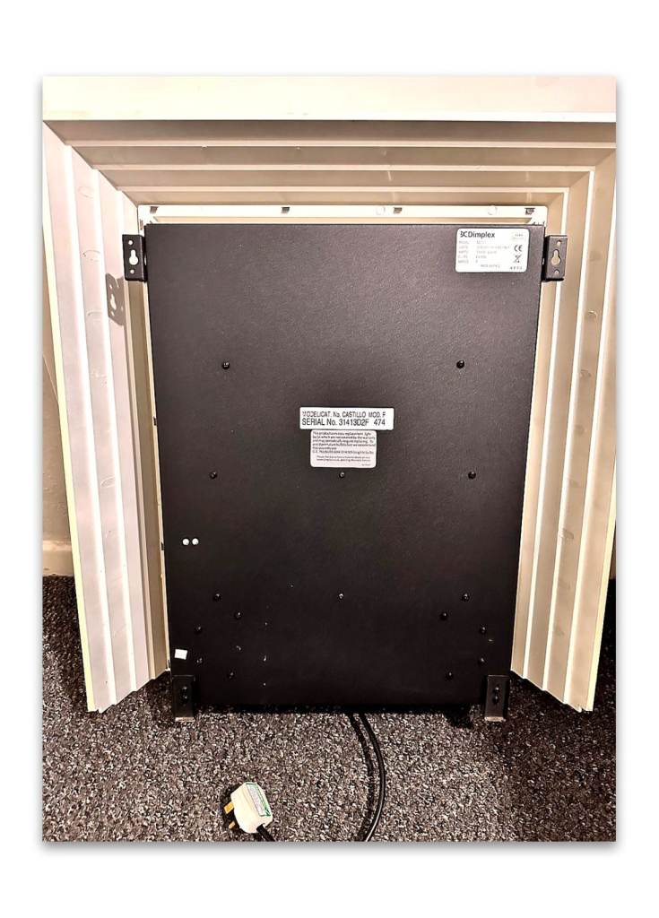 What’s included: Heater unit, curved chrome trim, bag of white pebbles, UK plug