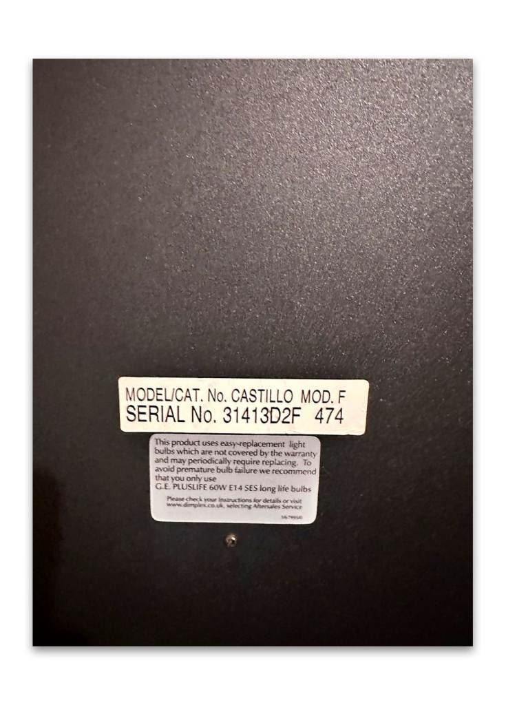 Selling a Dimplex Castillo CST20 inset electric fire in great condition. Plug-in installation – no flue. Flame effect with pebble bed, 2 heat settings (up to 2.0kW), and polished chrome/silver surround.