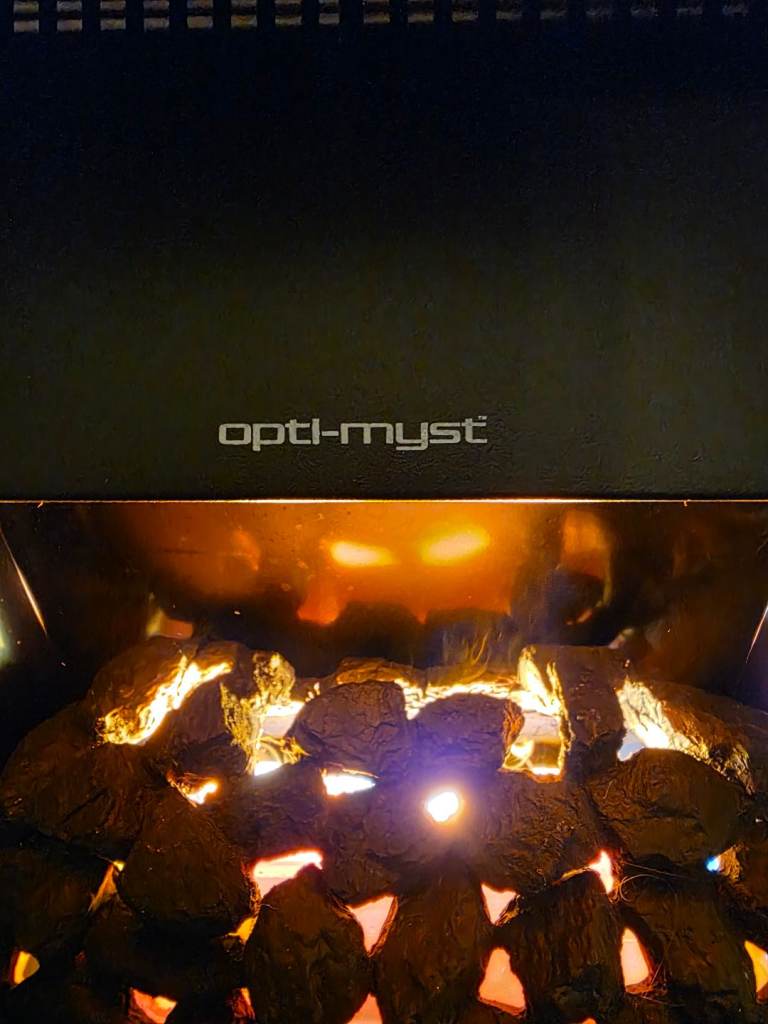 Dimplex Optimyst coal effect electric fire with remote control.