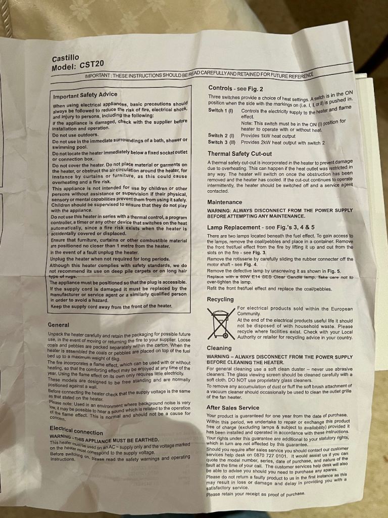 Posting for 13+ yearsDimplexCastillo CST20 2kw electric fire