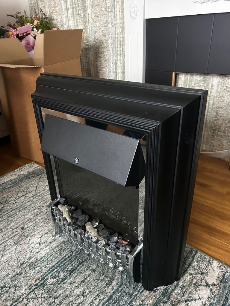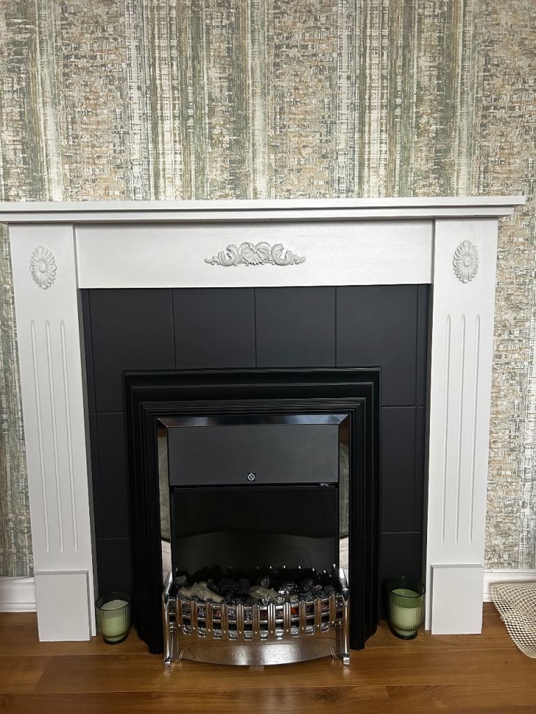 Beautiful fire and surround. Perfect working condition. Surround recently painted an off white/light grey. Tiles painted in black slate. Fire is Dimplex range, just over 1yr old and costs £299 alone (photo attached). Would prefer selling whole lot together but open to fire and surround separate