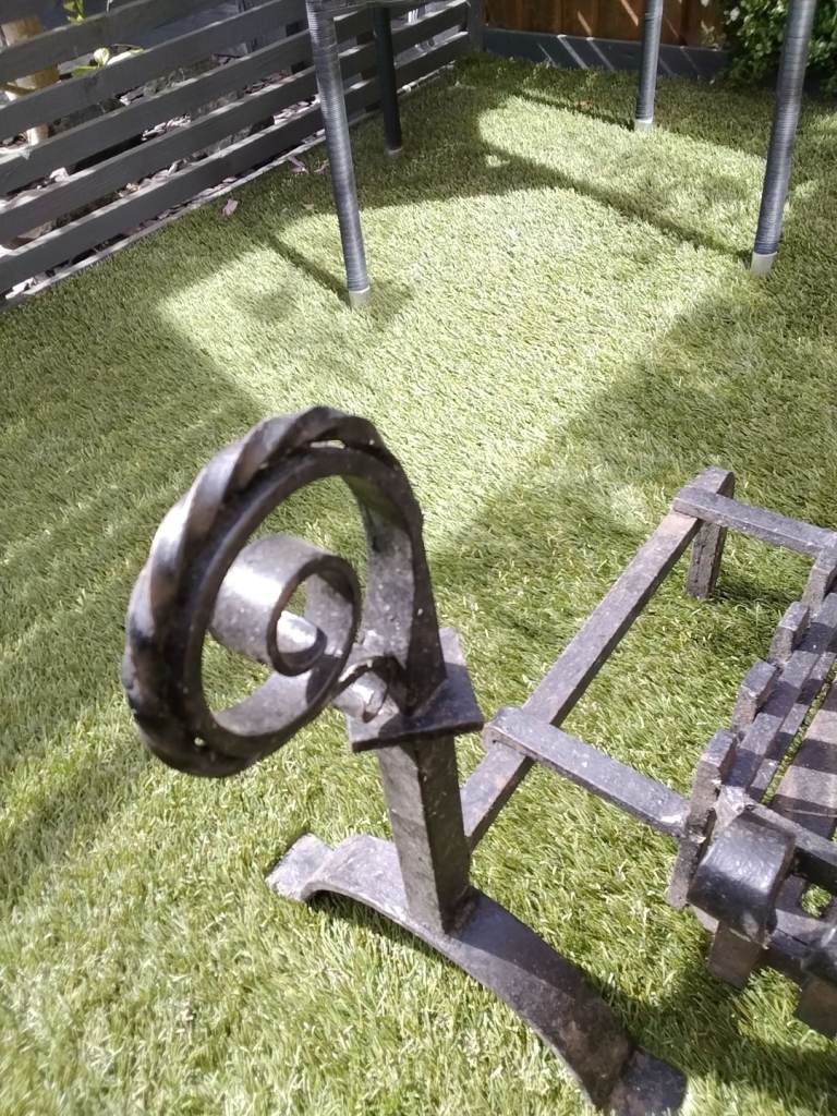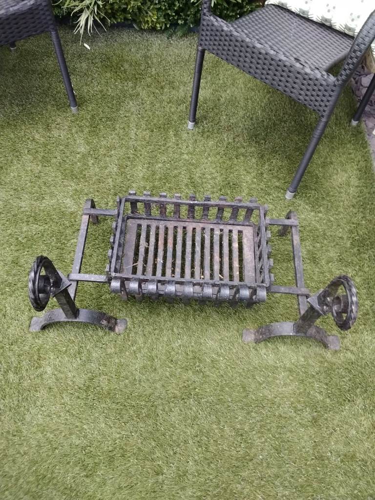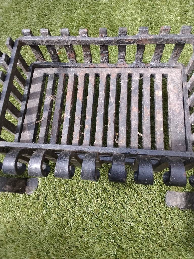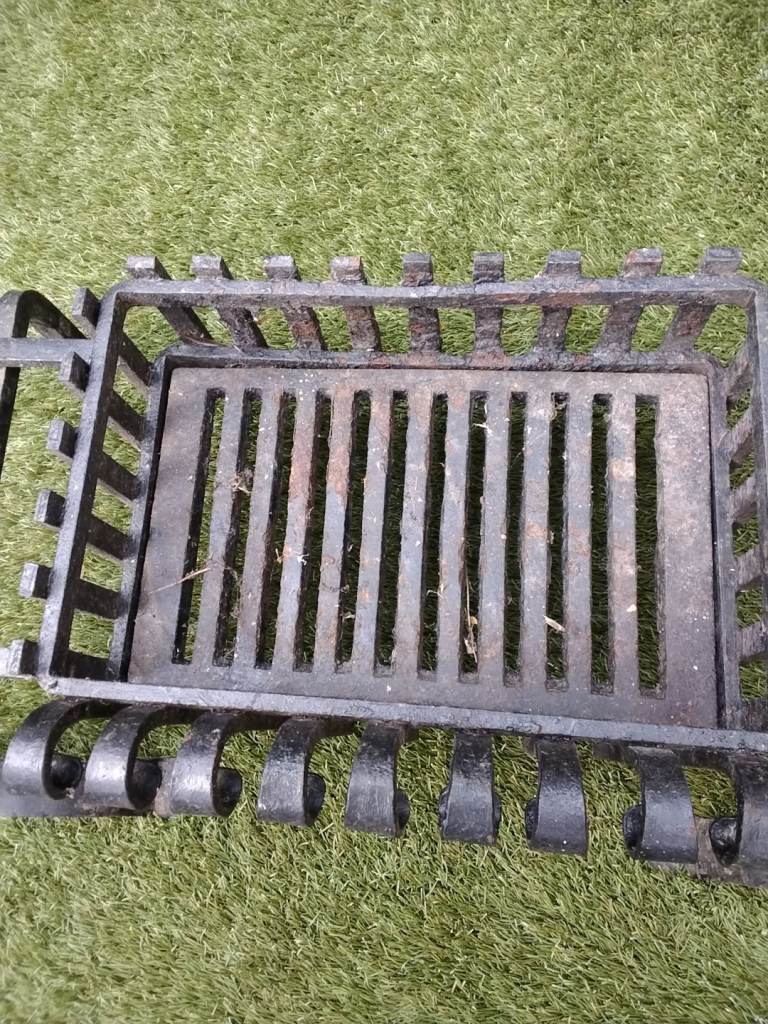 Black iron fire grate overall 36 inches by 16 inches grate 18 inches by 13 inches adjustable to make smaller