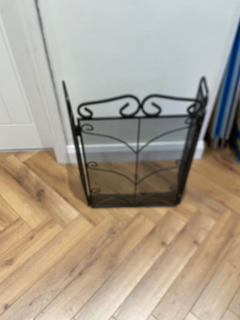 Black metal fireguard, in excellent condition. Approx 2ft high and 3ft wide extended.