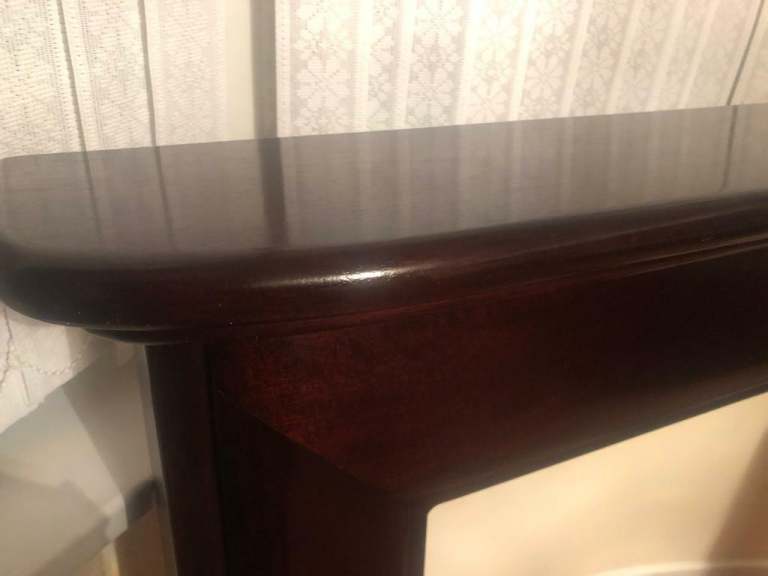 Mahogany mantelpiece, height 118cm x top length 136cm, excellent condition, from smoke free home, pick up or local drop off only - no postage and no hagglers please