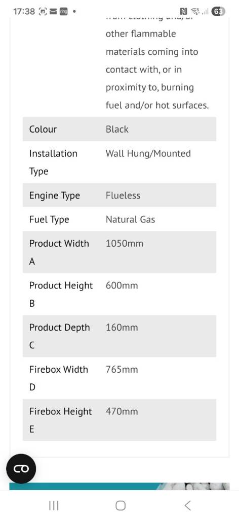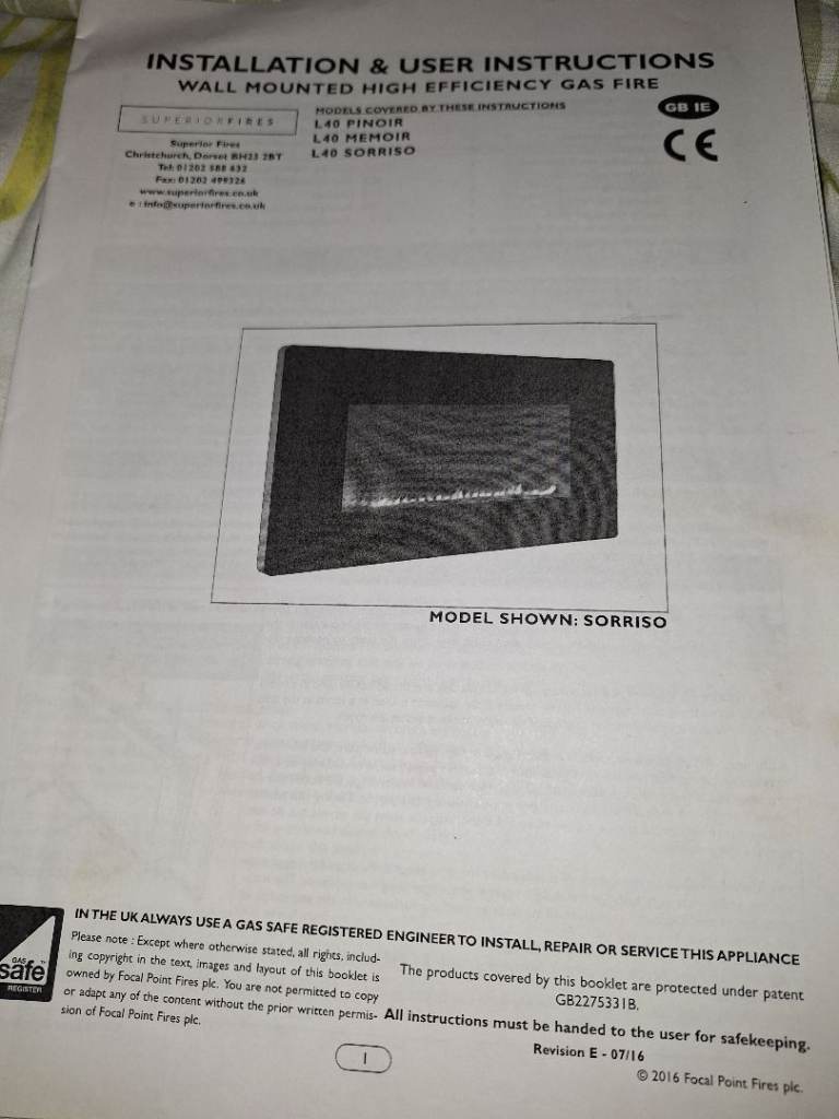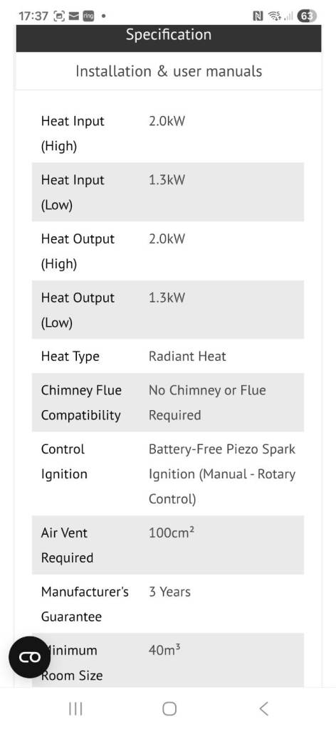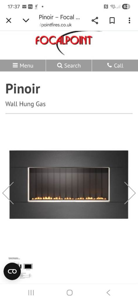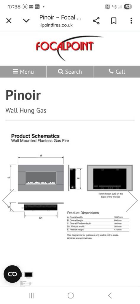 Flueless gas fire. Pinoir