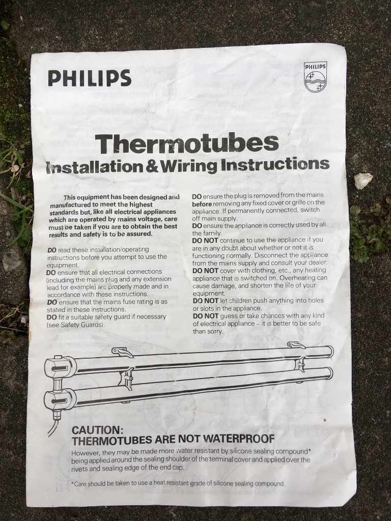 Philips 4 foot long bar radiator (60w per foot = 240w) for heating window displays, window sills, greenhouses (with your own timer attached), gentle hallway heat, small spare room etc.
