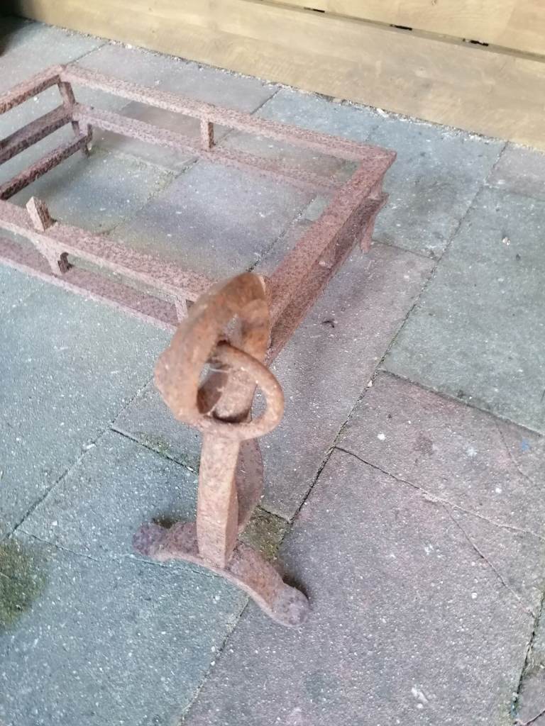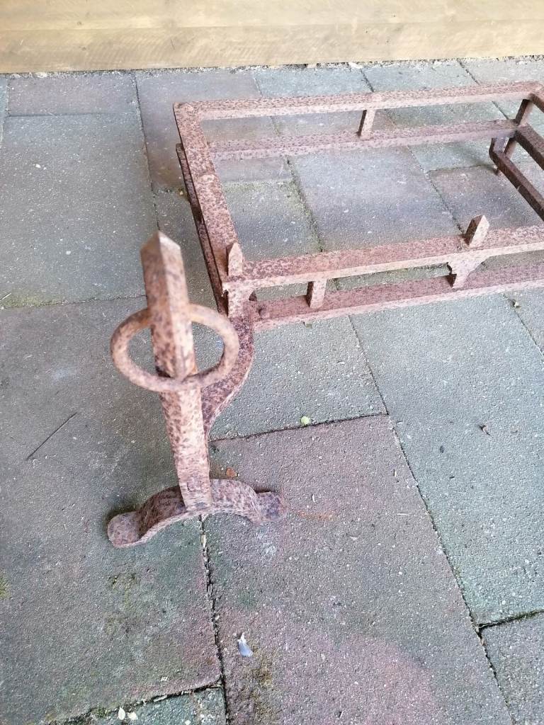 Large Antique Cast Iron Fire Basket With Fire Dogs Incorporated, No Grate.