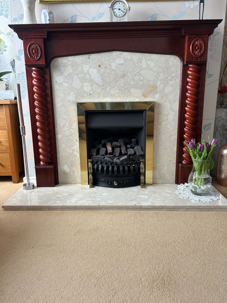 Lovely Mahogany fire surround with marble back and hearth in very good condition !