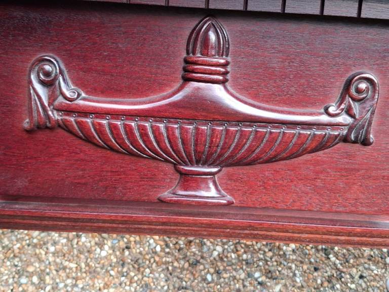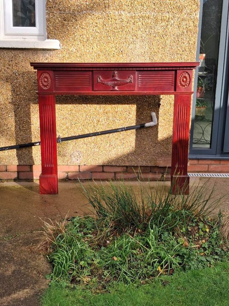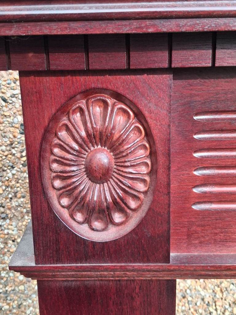 Solid mahogany fire surround. Measurements in pictures. Some minor wear and tear.