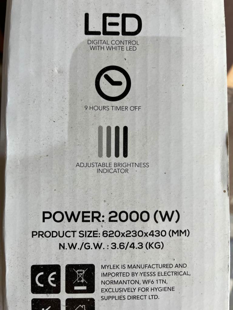 Mylek LED Convector heater 2kw boxed