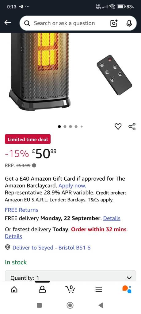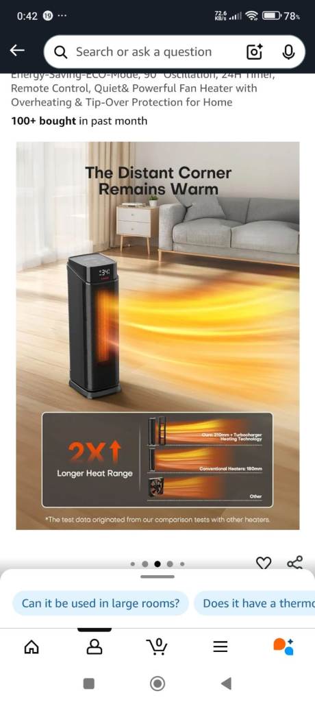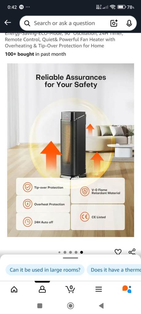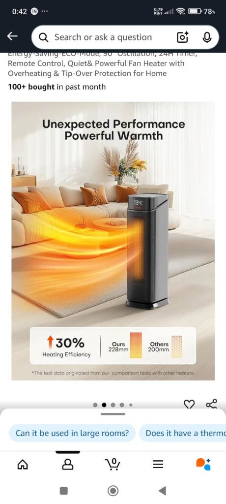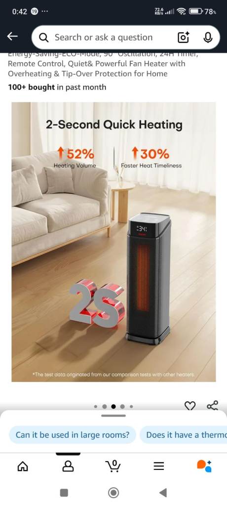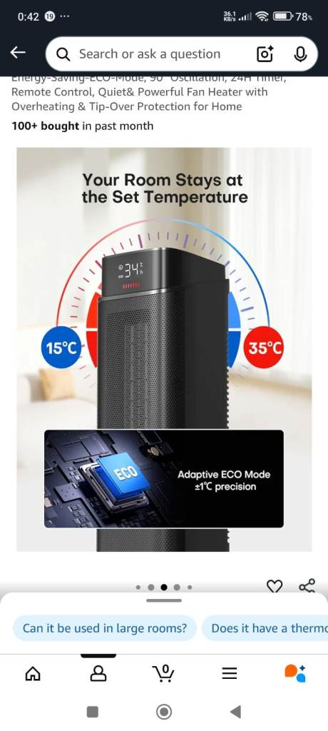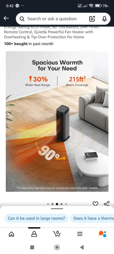 Qexreed 2000w electric heater with 4 modes, energy saving eco mode, 90 degree oscillation, 24h timer, remote control.