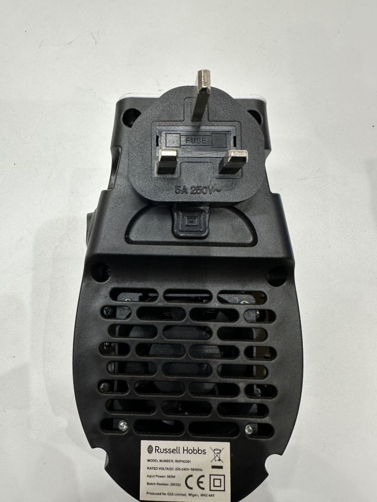 Russell Hobbs Electric Heater 500W Plug-In Wall Portable, 2 Fan Speeds