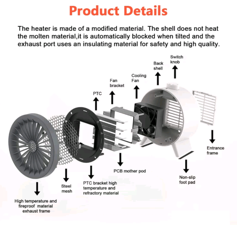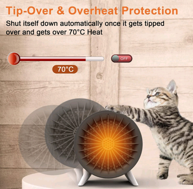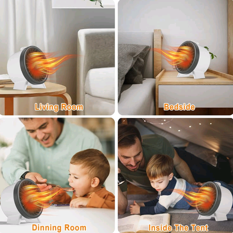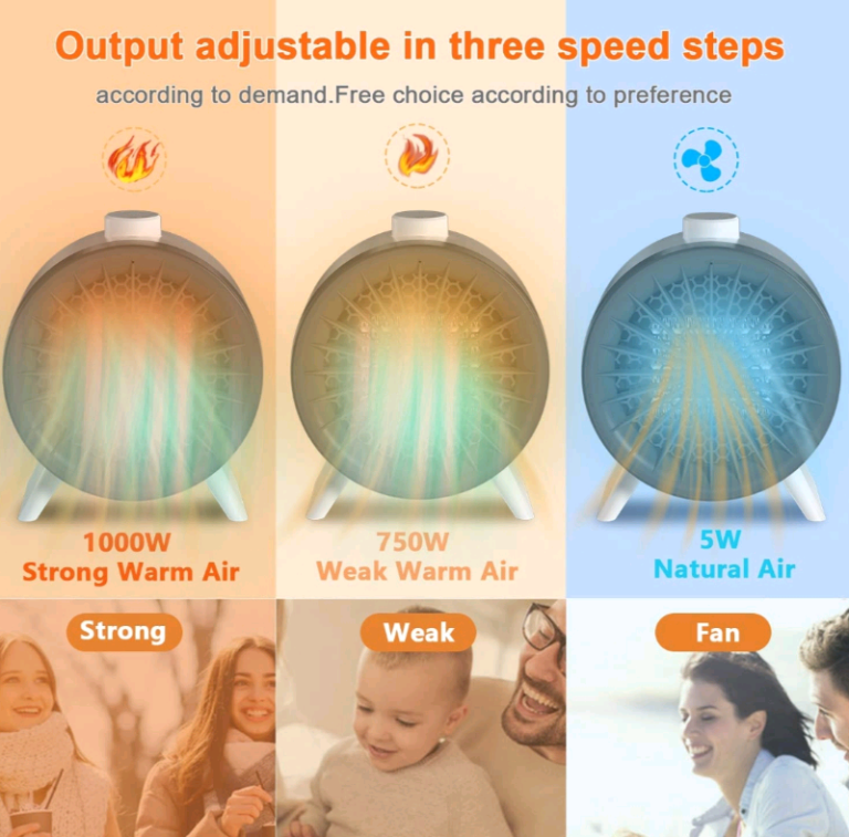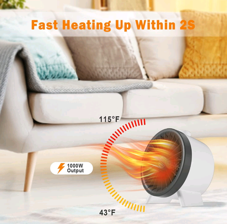 Space Heater, Electric Heater with Overheat & Tip-Over Protection, 1000W Ceramic PTC Heater with 3 Modes, Personal Heater for Office Desk Kitchen Bedroom and Dorm…