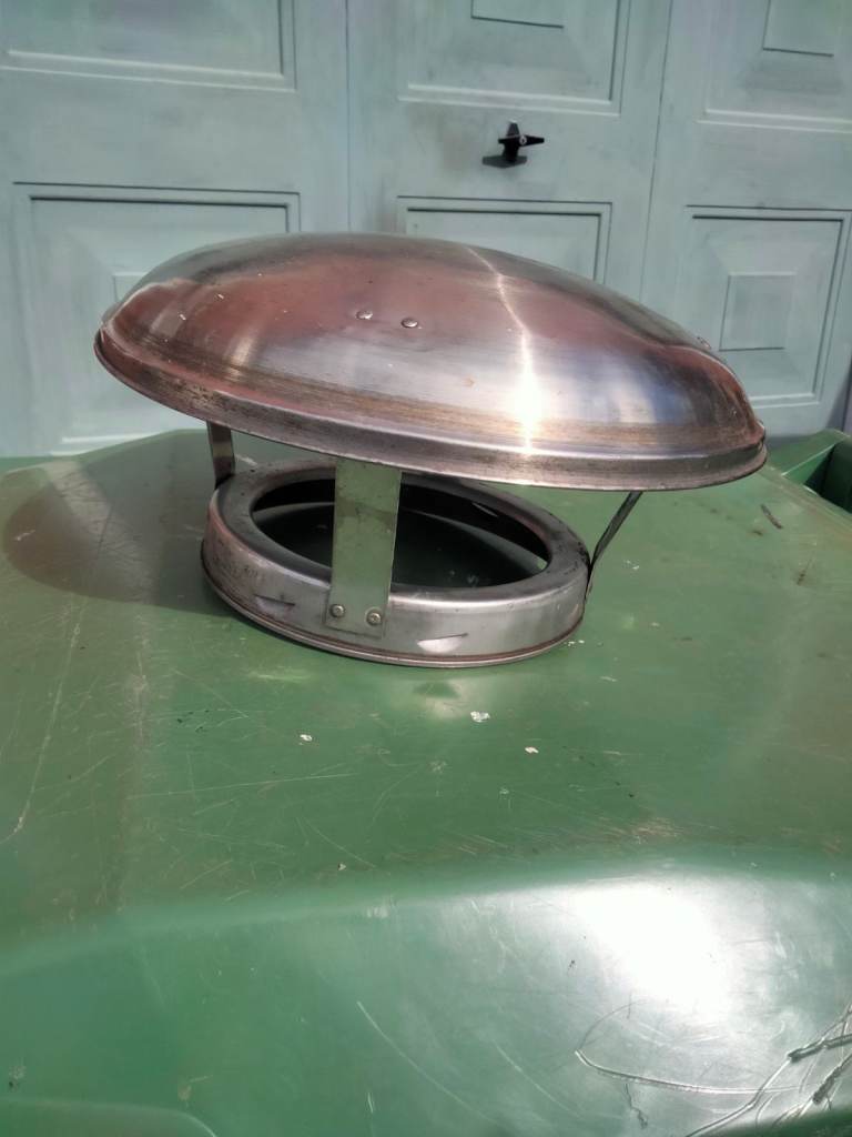 Stainless steel chimney cowl. Will fit twin wall flue pipes for log burner. Size in picture. Can deliver for cost of fuel