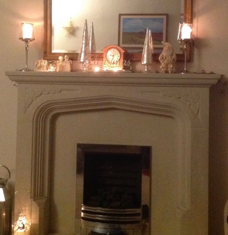 Composite stone fireplace with attractive carving. Fire not included. Collection only.