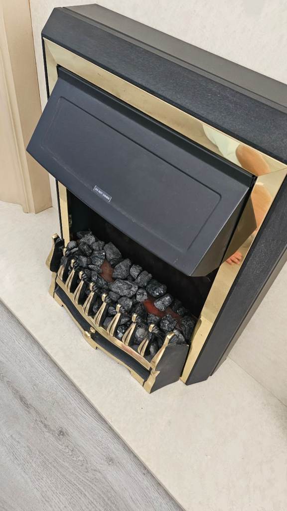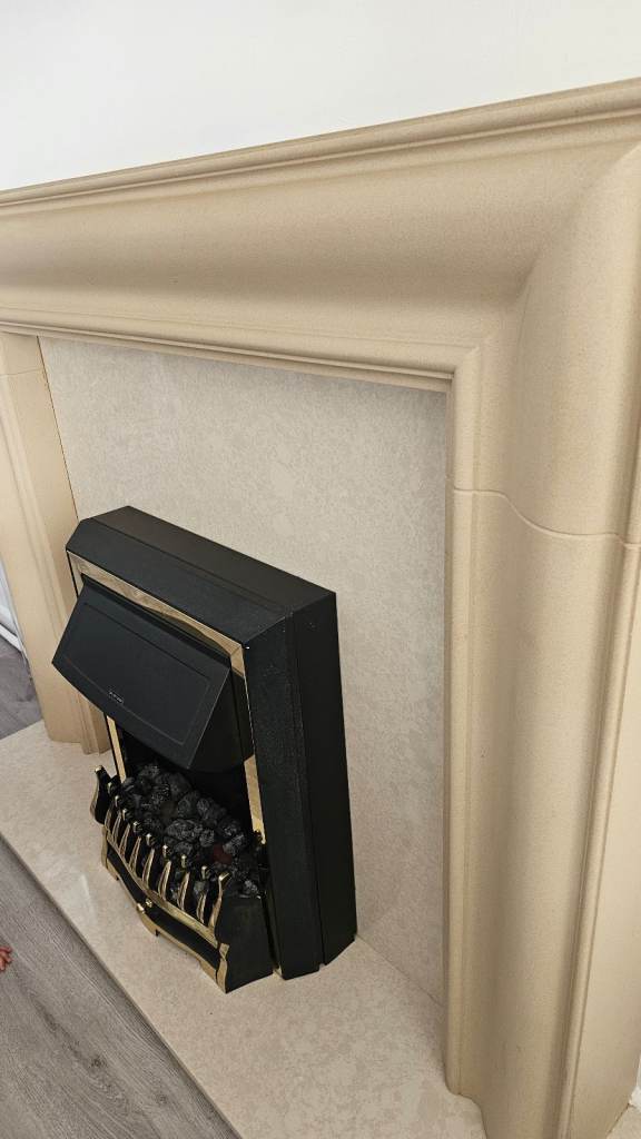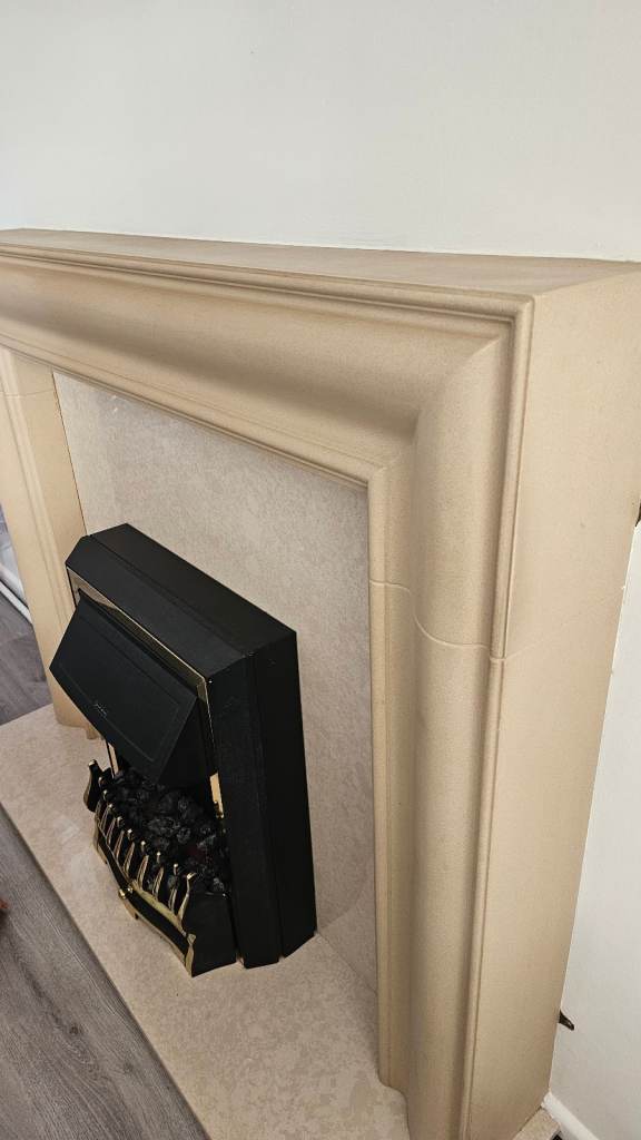 Stunning stone fire Mantel surround and electric heater in excellent condition